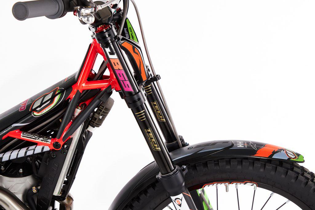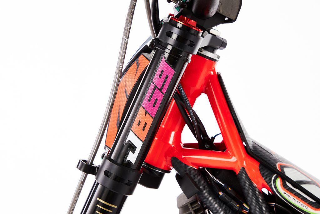 As well as all of these personal settings the bike is loaded with a wealth of high-end racing components. The new black with gold details Tech Factory spec forks in combination with the multi adjustable 3 way Reiger rear shock provide extremely smooth and responsive feedback to the rider whilst also allowing any rider to further fine tune their suspension set up depending on their individual riding style.